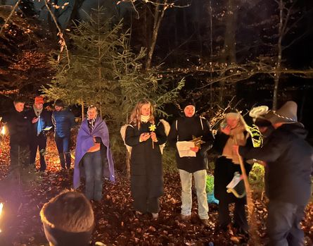 Zahlreiche Kinder und Erwachsene nahmen die Einladung des CVJM Altdorf zur Waldweihnacht am Montag, den 22.12.25 an. Gemeinsam liefen alle Besucher mit Fackeln von der Grundschule in den Fürstenschlagwald, um dort auf Mitglieder des ev. Posaunenchores unter der Leitung von Katrin Münch zu treffen. Ein Vorbereitungsteam hatte dort zudem einen Tannenbaum mit Lichtern geschmückt, den Platz mit Fackeln ausgeleuchtet und außerdem Glühwein und Punsch an einer Feuerstelle gekocht.
